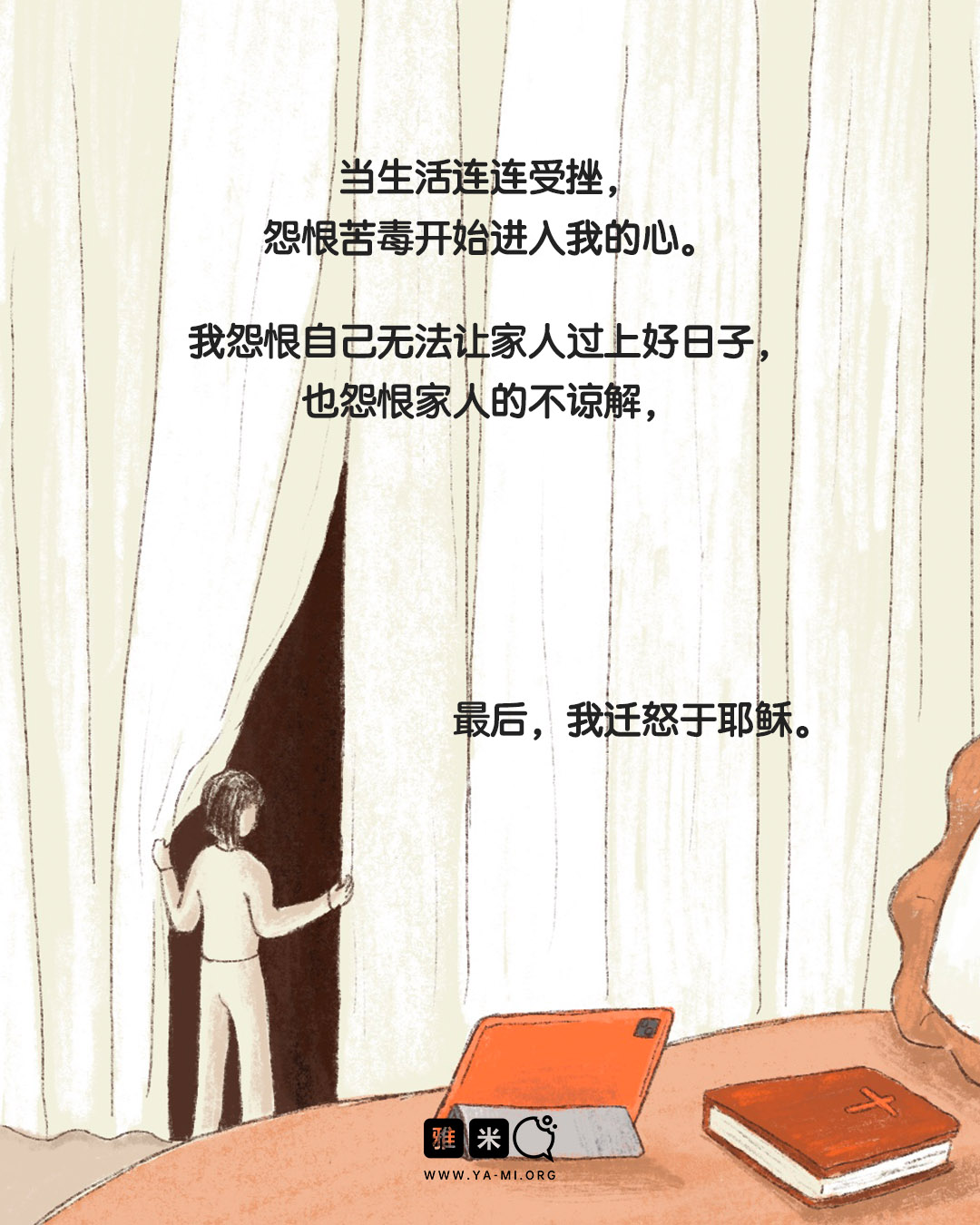 11月图文特辑:感恩在生命破裂的缝隙里2025 年 11 月 19 日/0 评论/在: 图文特辑, 艺术空间/通过: 雅米 绘画:Eve*内容改写自雅米文章《耶稣的爱使我学会感谢忧郁症》,作者:Nico我们总是更习惯因为“好事”而感恩: 危机成功解除、避开了一场意外、找到了失落很久的珍贵东西,被幸福感围绕的时刻…… 在顺境里感恩,是正常不过的反应。 然而,当你感到生命破碎的时候呢? 当你在痛苦中挣扎,当你因为上帝的沉默而感到无能为力的时候, 还要感恩吗?还能感恩吗? *此文章由雅米事工原创,如需转载,请注明出自“雅米,祢的话语so yummy!- www.ya-mi.org”分享此条目! https://ya-mi.org/sc/wp-content/uploads/2025/11/ap20251101.jpg 1350 1080 雅米 https://ya-mi.org/tc/wp-content/uploads/2025/05/%E6%96%B0logo.jpeg 雅米2025-11-19 07:01:042025-11-19 21:42:1711月图文特辑:感恩在生命破裂的缝隙里