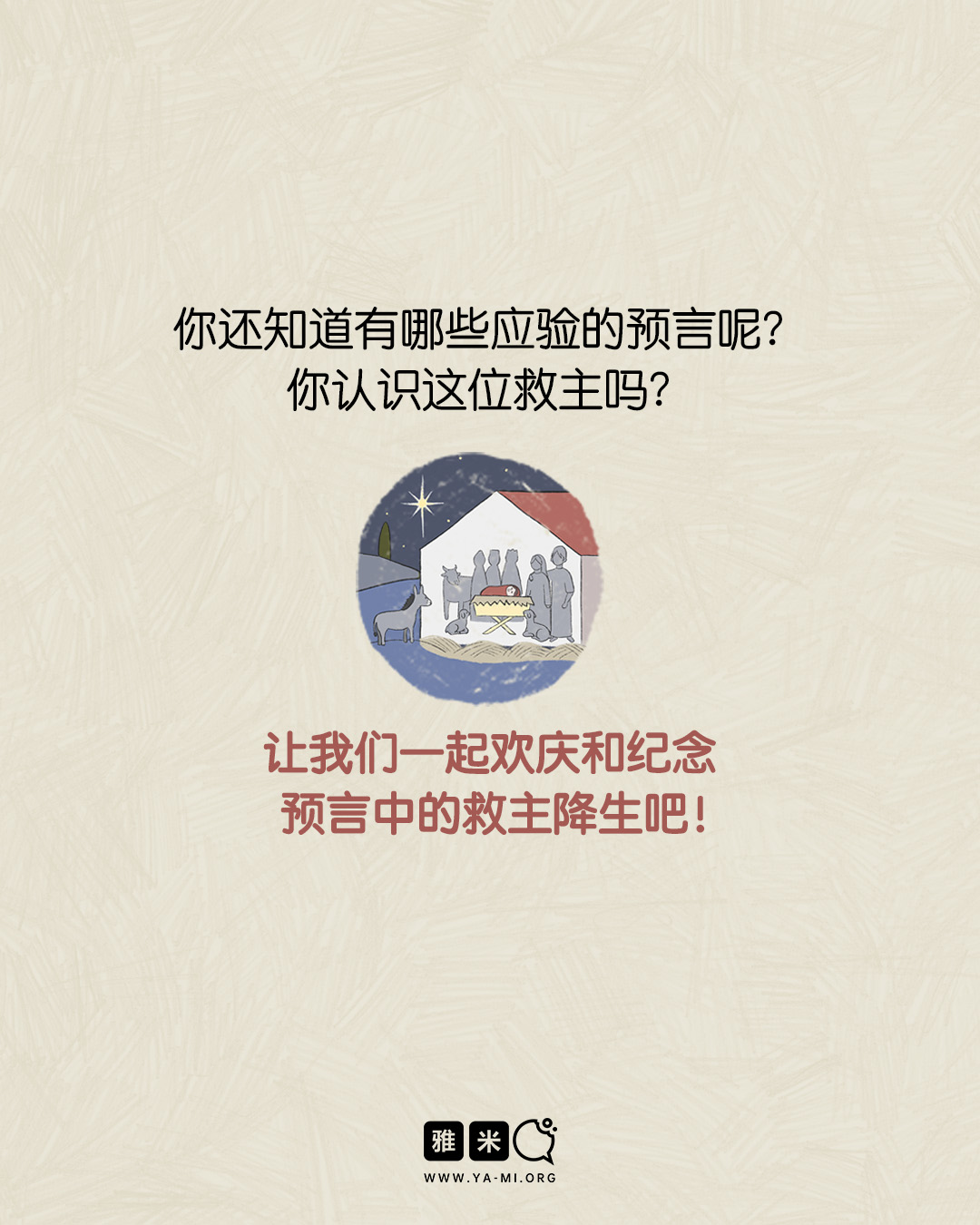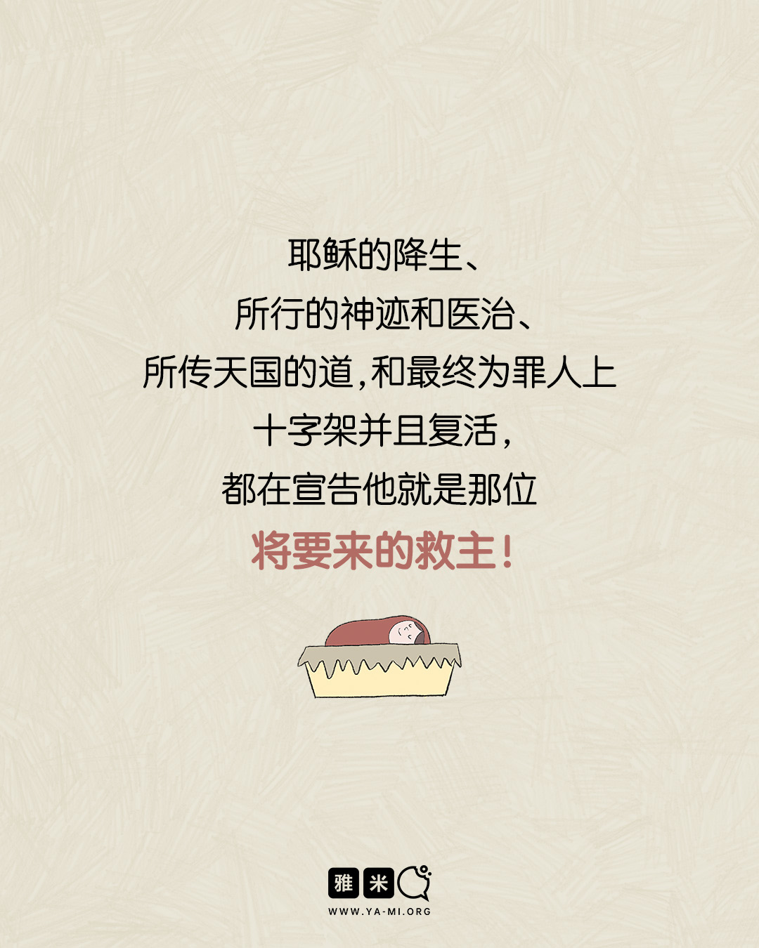 12月图文特辑:救主的预言X耶稣降生的应验2025 年 12 月 24 日/0 评论/在: 图文特辑, 艺术空间/通过: 雅米绘画:Eve这个世界上有那么多人自称是“救主”,但哪个才是真的? 救主有千年流传的预言作为凭证,那么谁又是完全符合预言所说的,那位拯救者? 当耶稣自称是上帝的儿子,是预言中的拯救者,祂要么说的是真的,要么就是个疯子,或是个大骗子。 让我们一起来看看到底耶稣基督应验了哪些预言?祂的降生所发生的事告诉世界什么? *此文章由雅米事工原创,如需转载,请注明出自“雅米,祢的话语so yummy!- www.ya-mi.org”分享此条目! https://ya-mi.org/sc/wp-content/uploads/2025/12/封面.jpg 1350 1080 雅米 https://ya-mi.org/tc/wp-content/uploads/2025/05/%E6%96%B0logo.jpeg 雅米2025-12-24 07:01:162025-12-28 21:18:1812月图文特辑:救主的预言X耶稣降生的应验