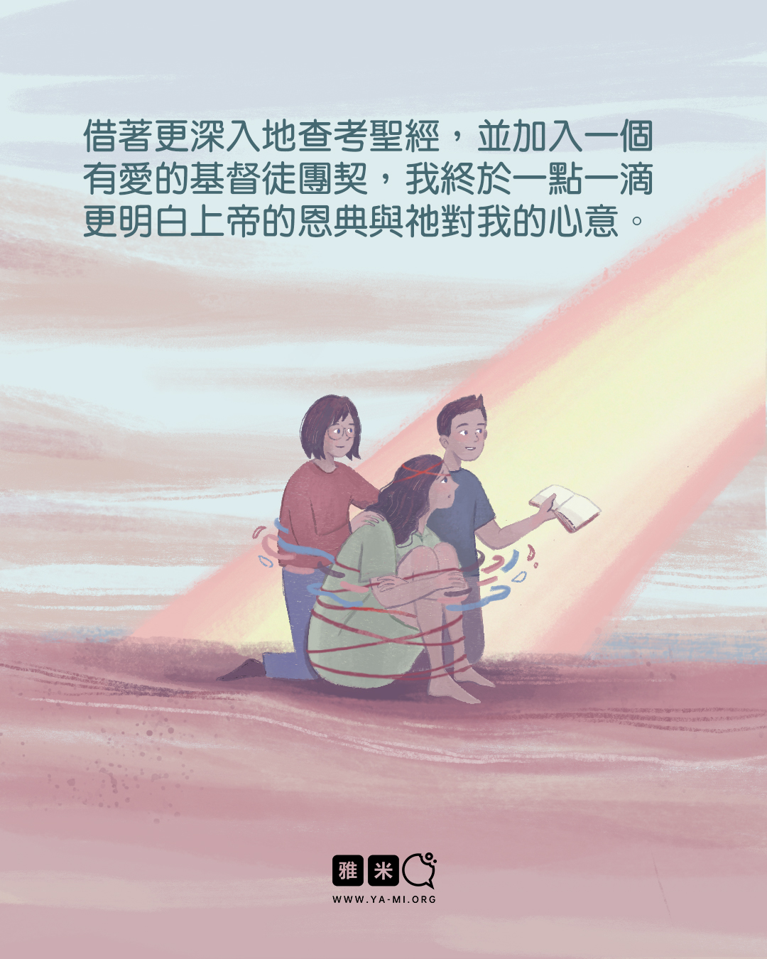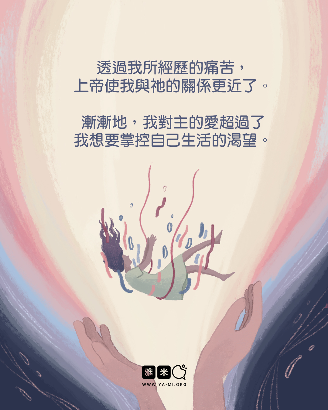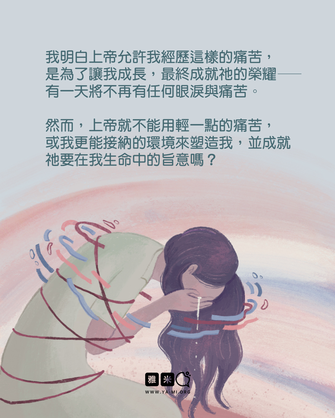 10月圖文特輯:若我無法接納我所經歷的痛苦該怎麼辦?2025 年 10 月 23 日/0 評論/在: 圖文特輯, 藝術空間/通過: 雅米 翻译:奇奇我们永远无法为苦难找到合理的辩护。痛苦与折磨会给我们留下难以愈合的伤痕 。但正如经历过很多苦难的约伯所说:“祂纵然杀我,我还要仰望祂”(约伯记 13章15节)。 愿我们的目光转向那位永远与我们同在、永远充满慈爱和良善的主,以寻求盼望和重建。插画原发表于 @ourdailybread.sg,经授权使用。 *此文章由雅米事工原創,如需轉載,請註明出自“雅米,祢的話語so yummy!-www.ya-mi.org”分享此條目! https://ya-mi.org/tc/wp-content/uploads/2025/10/若我无法接纳我所经历的痛苦该怎么办?_feature-Image.jpg 860 2048 雅米 https://ya-mi.org/tc/wp-content/uploads/2025/05/%E6%96%B0logo.jpeg 雅米2025-10-23 16:38:302025-10-23 16:38:3010月圖文特輯:若我無法接納我所經歷的痛苦該怎麼辦?