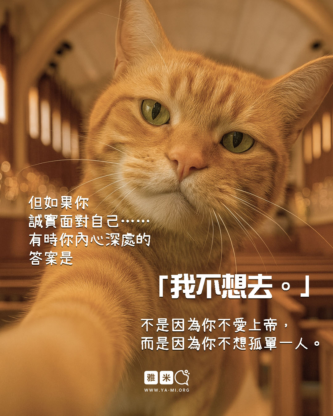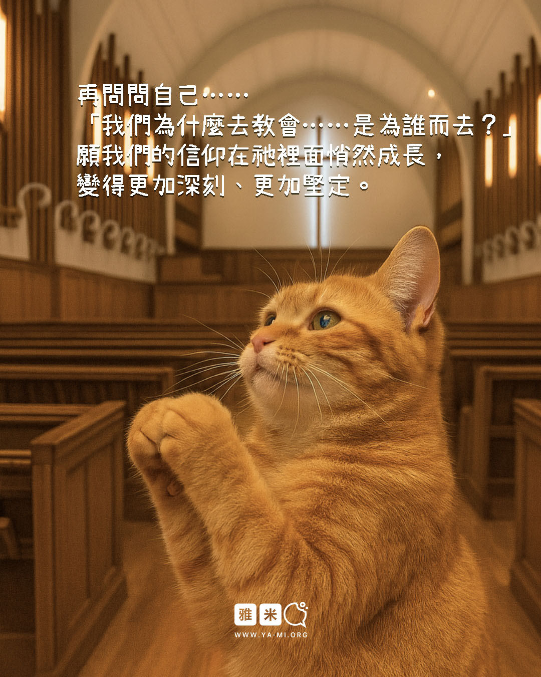 願這個問題不是讓我們感到愧疚,而是一個可以真誠地問問自己的機會:「我們為什麼去教會……是為誰而去?」