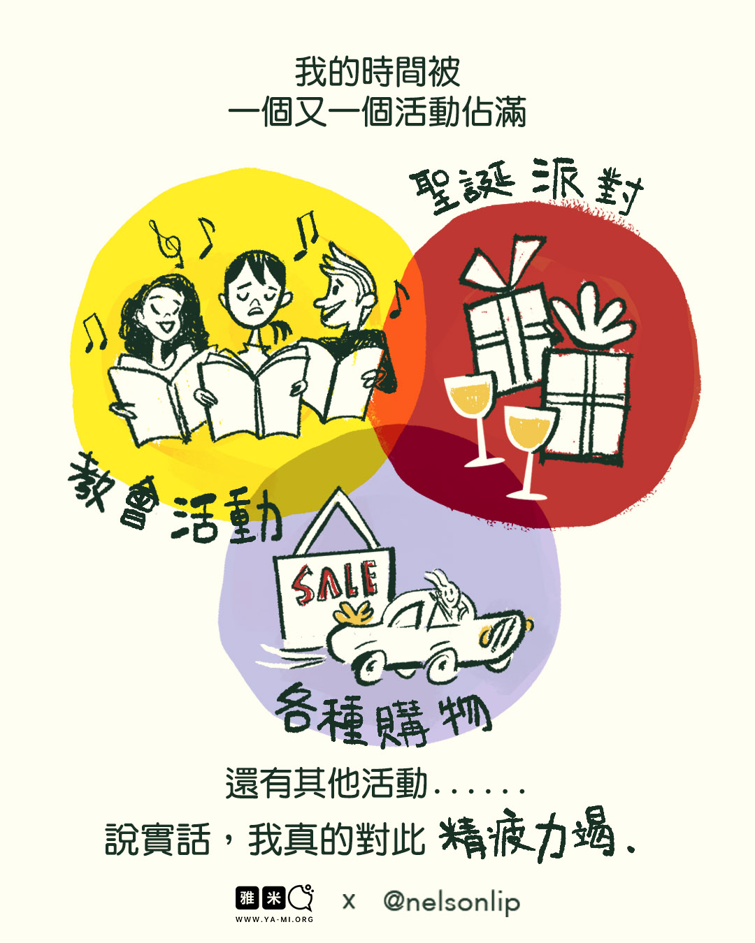 然而,聖誕季也意味著一段需要精心策劃派對和各種教會活動的時期。這些準備工作很容易讓我們感到疲憊。不知不覺中,我們已經筋疲力盡,甚至無法享受節日的樂趣。